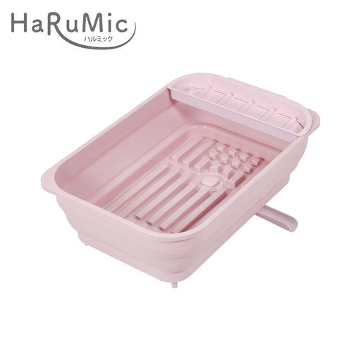 ハルミック 折りたたみできる水切りカゴ(ポケット付)(ペールピンク)