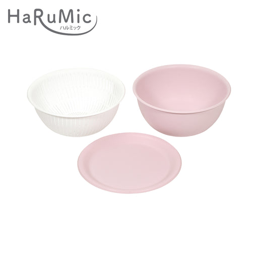 ハルミック カラーボウル・ザル22cm 3点セット(ペールピンク・ホワイト)