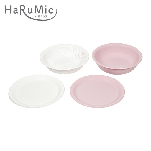 ハルミック カラー浅型ボウル・ザル22cm 4点セット(ペールピンク・ホワイト)