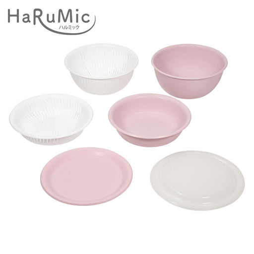 ハルミック カラーボウル・ザル22cm 6点セット(ペールピンク・ホワイト)