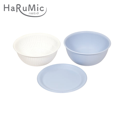 ハルミック カラーボウル・ザル22cm 3点セット(ブルーグレー・ホワイト)