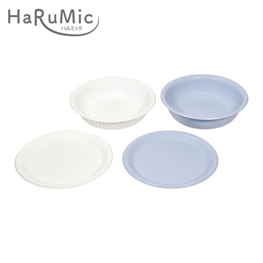 ハルミック カラー浅型ボウル・ザル22cm 4点セット(ブルーグレー・ホワイト)