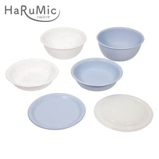 ハルミック カラーボウル・ザル22cm 6点セット(ブルーグレー・ホワイト)