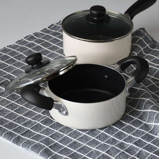 ジャストサイズ IH対応ふっ素加工ガラス蓋付両手鍋16cm(ホワイト)