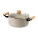 スプル ふっ素加工IH対応ガラス蓋付木柄深型両手鍋20cm