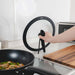 新形状のハンドルは調理時にはスタンディング、収納時はフラットになり