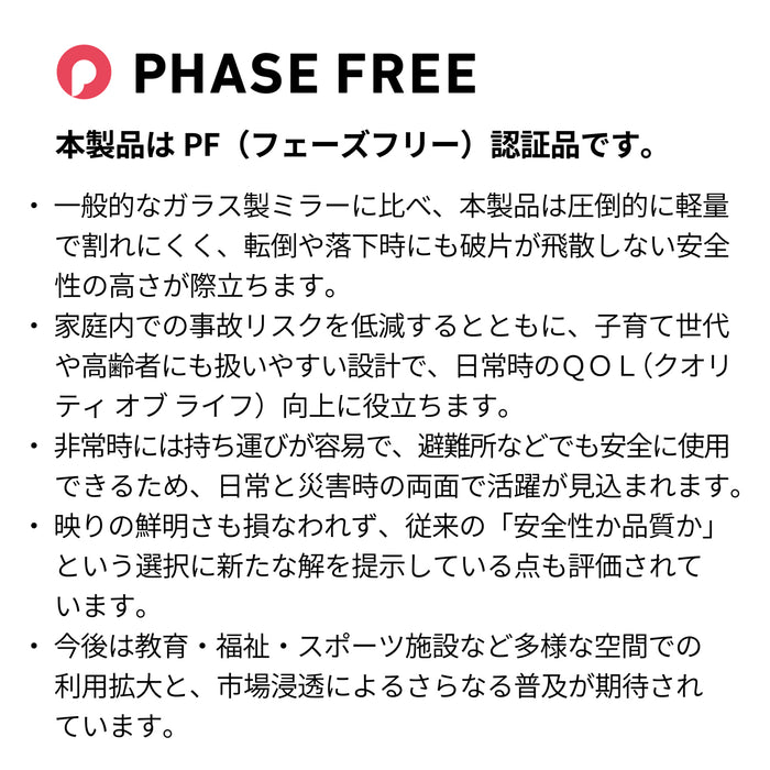 軽くて割れないフィルムミラー!反射率が90%以上なのでガラスミラー同様明るくきれいに映ります!